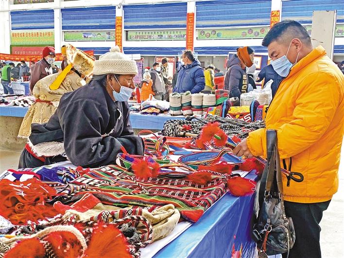 各大展臺(tái)上,牛羊肉、奶渣、酥油等農(nóng)畜產(chǎn)品,蟲草、貝母、人參果等中藥材,各具特色的民族手工藝品等,引得人們流連忘返?!拔覀兊难┑匮ナ羌兪止ぶ谱鞯模っ惑w,這里面是羊毛,很暖和,高筒的180元一雙,低筒的150元一雙,擺攤不到一小時(shí),我們已賣出了8雙?!眮?lái)自雙湖縣嘎措鄉(xiāng)合作社的羅培笑逐顏開。據(jù)羅培介紹,這是他們合作社第6次參加該展銷會(huì),除了賣手工藝品,他們還賣牛羊肉?!爸挥?jì)算手工藝品,我們每次銷售額都在3萬(wàn)元左右?!?/p>