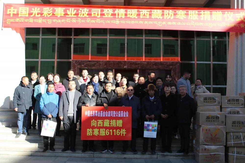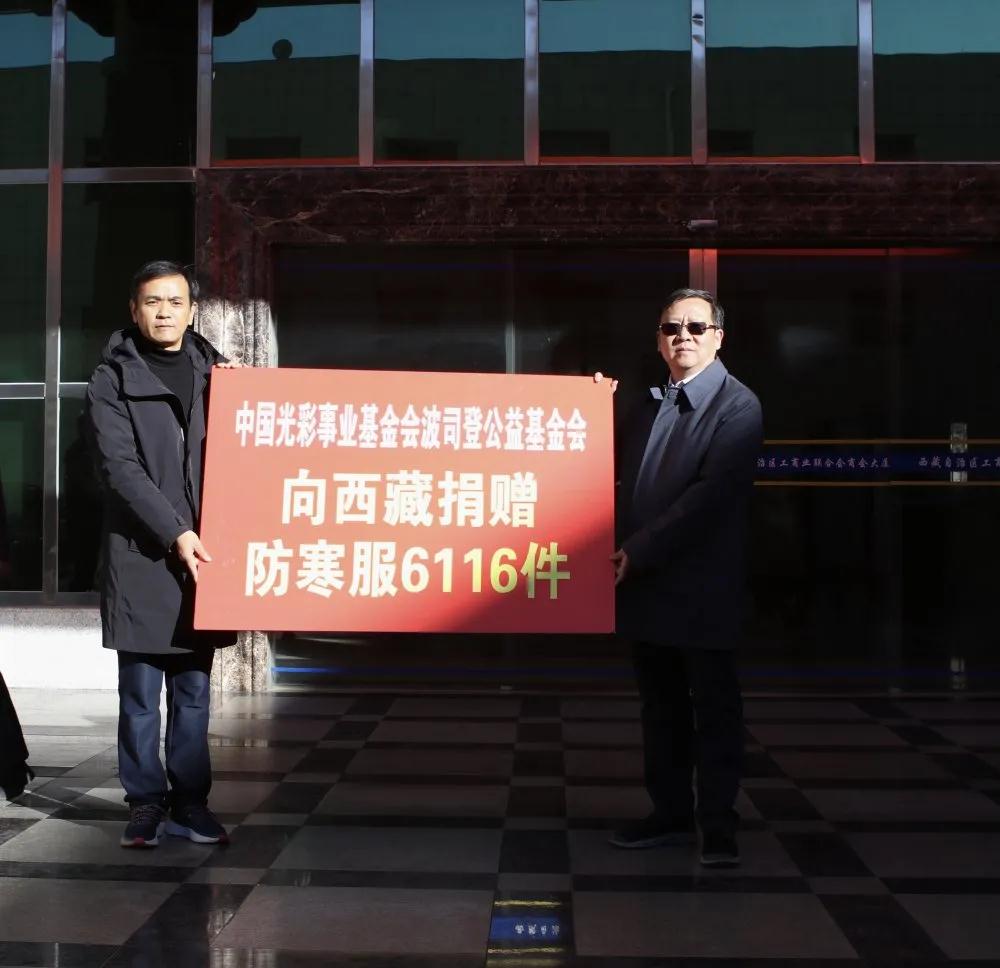 2021年1月8日,“中國光彩事業(yè)波司登防寒服情暖西藏”捐贈儀式在拉薩隆重舉行。西藏自治區(qū)黨委統(tǒng)戰(zhàn)部副部長、西藏自治區(qū)工商聯(lián)黨組書記王念東,波司登集團黨委副書記、波司登公益基金會理事長朱鈞,西藏自治區(qū)工商聯(lián)黨組成員、副主席陸紅軍,西藏自治區(qū)工商聯(lián)黨組成員、副主席、秘書長、西藏自治區(qū)光彩事業(yè)促進會秘書長張蓉出席了捐贈儀式。