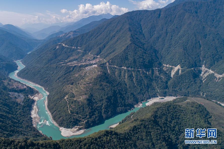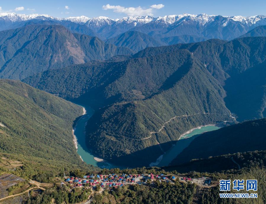 西藏林芝市墨脫縣德興鄉(xiāng)巴登則村位于雅魯藏布江邊的一座山上(2月9日攝,無人機照片)。新華社記者 孫非 攝