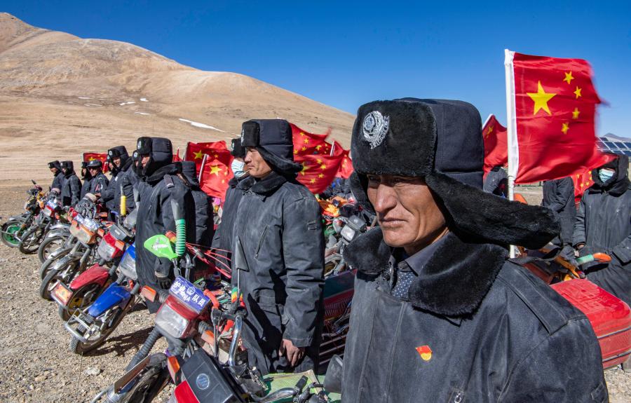 “巡邏隊(duì)負(fù)責(zé)協(xié)助派出所巡邏,重點(diǎn)防范非法出入境人員從各山口偷渡。”薩嘎邊境管理大隊(duì)教導(dǎo)員王卿龍介紹,由于邊境地區(qū)面積廣大,隊(duì)里便發(fā)動(dòng)普通群眾,共同守衛(wèi)邊境安全。