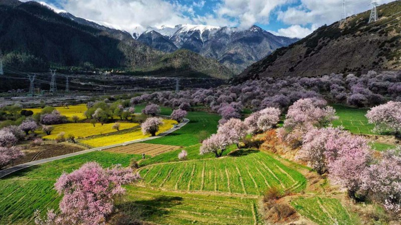 主辦方介紹,生機(jī)盎然的粉嫩桃花,在氣勢(shì)磅礴的冰山雪峰下綿延起伏,與雅魯藏布江的壯美交相輝映。