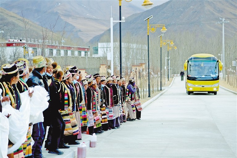 強吉村村民迎接游客。倫珠次仁 記者 洛桑 攝