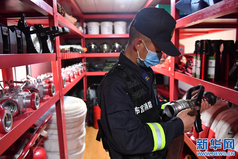 布達拉宮消防救援大隊隊員在巡邏期間檢查消防設(shè)施(3月4日攝)。新華社記者 孫瑞博 攝