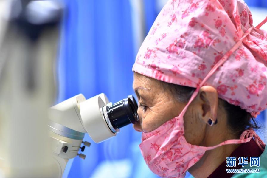 3月24日,西藏拉薩光明眼科康復(fù)診療院醫(yī)生卓嘎在給白內(nèi)障患者實(shí)施手術(shù)。新華社記者 覺果 攝