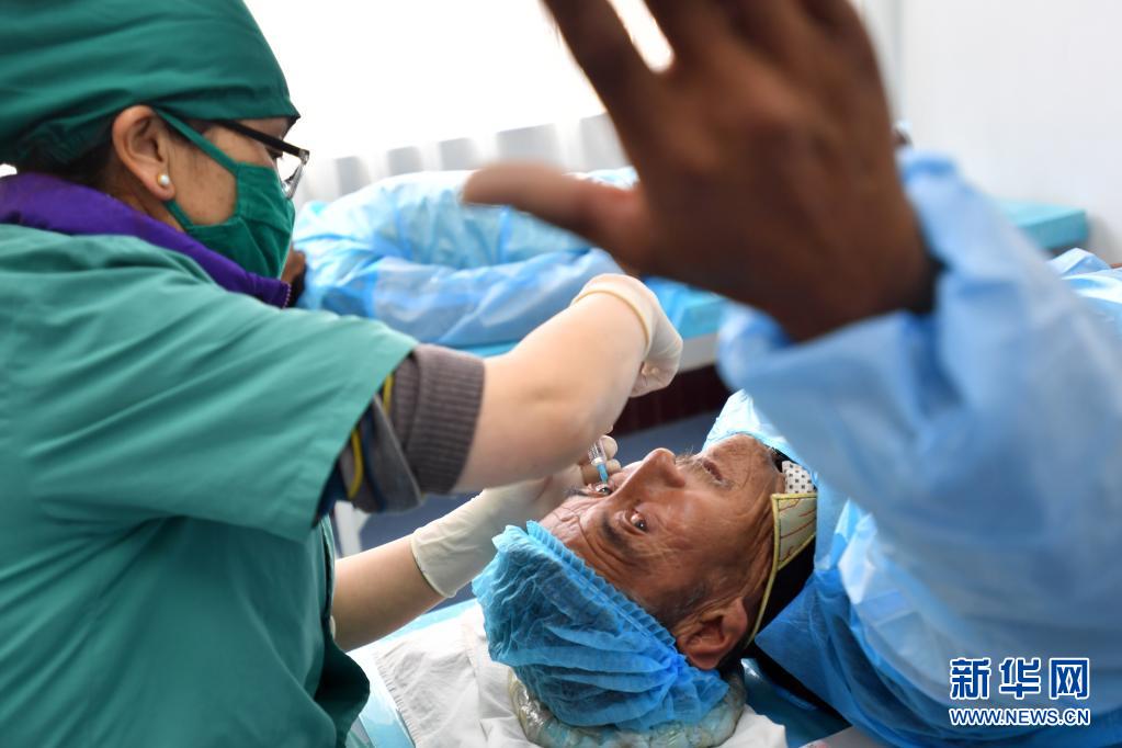 3月25日,78歲的白內(nèi)障患者斯多通過手術(shù)重見光明。新華社記者 覺果 攝