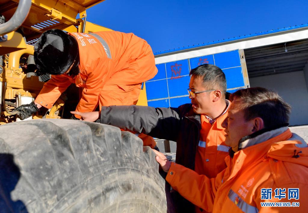 安多公路養(yǎng)護(hù)段工作人員在檢修施工機(jī)械(1月13日攝)。新華社記者 張汝鋒 攝