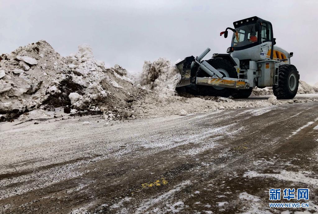 在國(guó)道109線K3363路段,安多公路養(yǎng)護(hù)段工作人員進(jìn)行除雪除冰作業(yè)(2020年3月11日攝)。新華社發(fā)(后耀軍 攝)