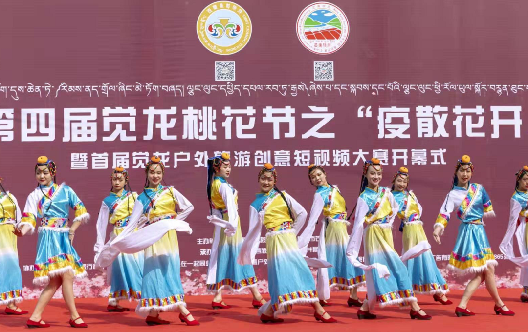 4月3日活動正式開幕,開幕式上,昌都市人大常委會主任、黨組書記,芒康縣委書記齊應(yīng)海宣布活動開幕,并為納西民族鄉(xiāng)覺龍村頒授了《全國鄉(xiāng)村旅游重點(diǎn)村》獎牌。昌都市旅游發(fā)展局副局長蔡慶,芒康縣委常委、常務(wù)副縣長杜晨光出席開幕式并致辭。麗江藝術(shù)團(tuán)和芒康藝術(shù)團(tuán)帶來的歌舞《吉祥謠》《福滿昌都》《崗拉梅朵》等精彩紛呈的表演為在場觀眾帶來了一場歌舞盛宴。開幕式后,游客們循著山谷中遍野的桃花,漫步山野田間,記錄著每一個美麗的瞬間。出了覺龍溝,大家在扎古西大峽谷參觀了文成公主廟和崗達(dá)寺,傍晚在云曲莊園大家圍著篝火跳起了歡快的舞蹈。