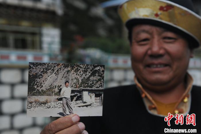 圖為林芝市工布江達(dá)縣巴河鎮(zhèn)雪卡村村民拿出舊照對(duì)比安居工程項(xiàng)目實(shí)施后的住房變化。農(nóng)行西藏分行供圖 農(nóng)行西藏分行供圖