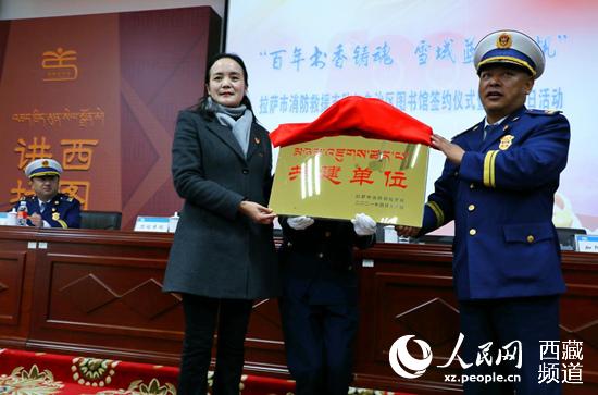 雙方還簽訂了共建協(xié)議,就圖書流動站建設(shè)、消防志愿服務(wù)隊建設(shè)和數(shù)字化電子圖書服務(wù)等達成一致。旦增卓瑪代表西藏自治區(qū)圖書館向拉薩市消防救援支隊贈送書籍1000冊。