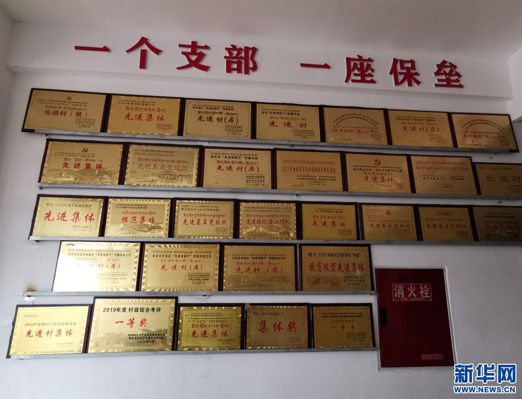 色果拉村村黨支部的榮譽(yù)墻(2020年5月12日攝)。新華社記者 薛文獻(xiàn) 攝