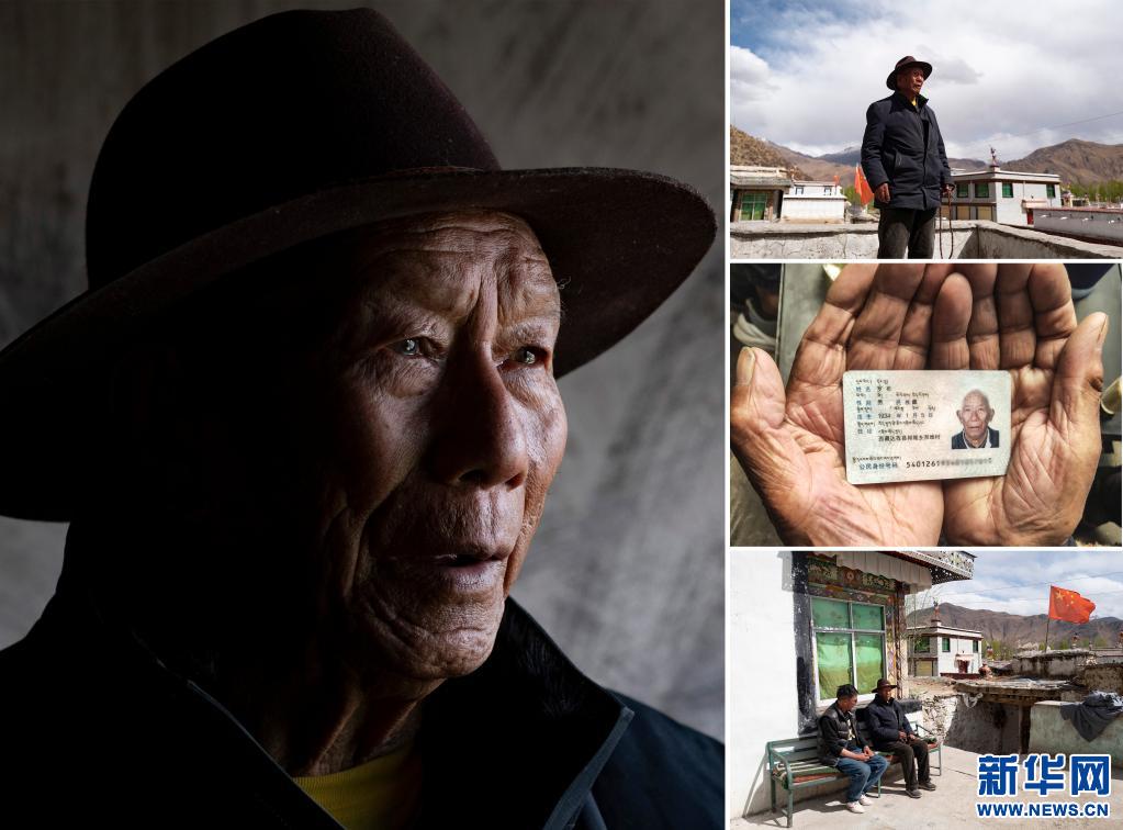 左圖:拉薩市當(dāng)雄縣寧中鄉(xiāng)麥靈村次仁老人的肖像(4月16日新華社記者孫瑞博攝)。
