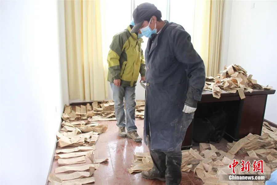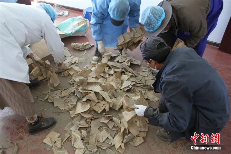 挖掘工作持續(xù)了3天才結(jié)束。由于當(dāng)時(shí)寺院條件簡(jiǎn)陋,古籍散葉被臨時(shí)裝入編織袋中,足足裝滿了68袋。