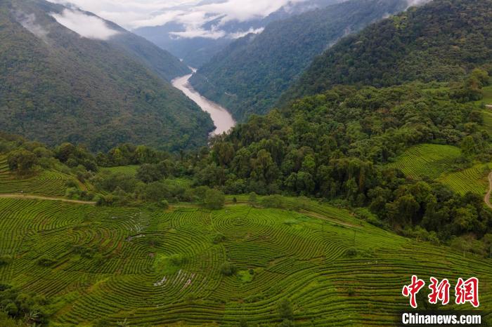 圖為西藏墨脫縣雅魯藏布江邊的茶園,如今茶葉已成為墨脫縣的特色產(chǎn)業(yè)。江飛波 攝