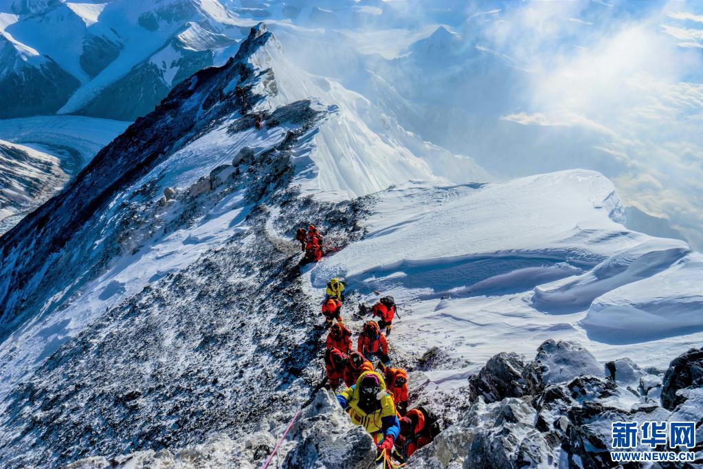 2020年5月27日,2020珠峰高程測(cè)量登山隊(duì)在峰頂合影留念。新華社特約記者扎西次仁攝