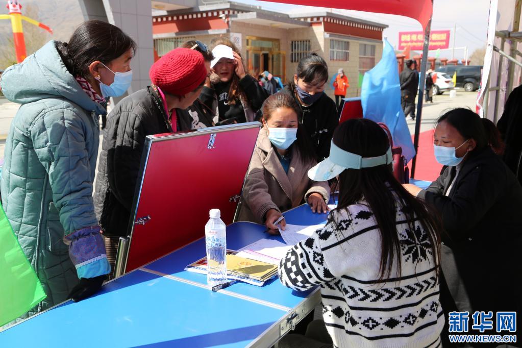 西藏農(nóng)牧民在瓊結(jié)縣產(chǎn)業(yè)園參加“春風(fēng)行動”招聘會。
