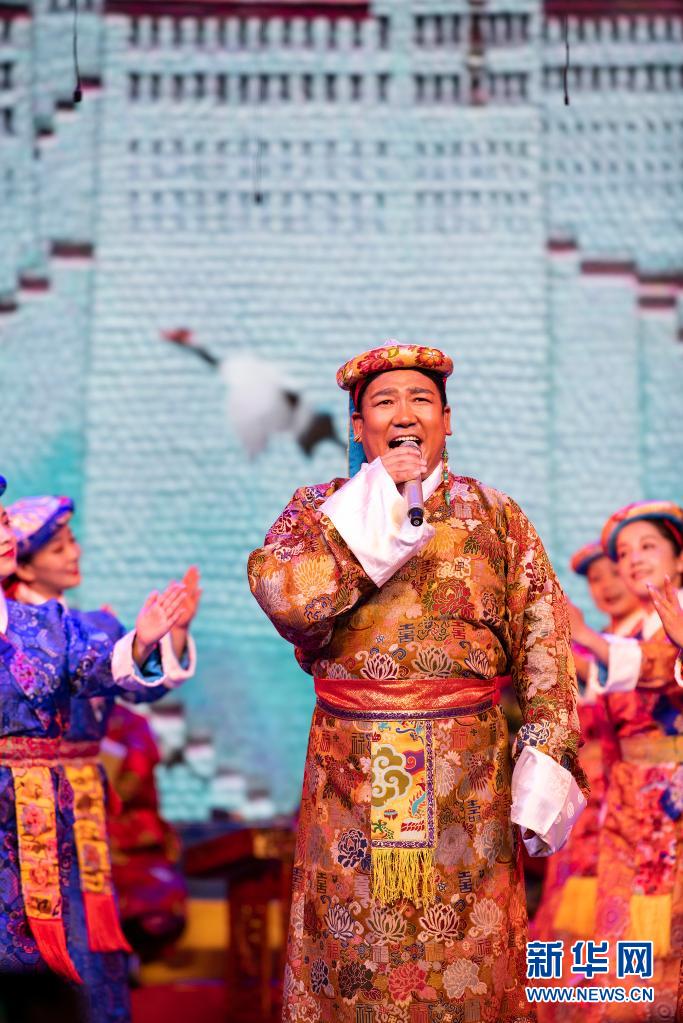 6月12日,在西藏拉薩市的自治區(qū)群藝館,演員表演扎念彈唱《普伊桑林貢巴》。新華社記者 孫瑞博 攝