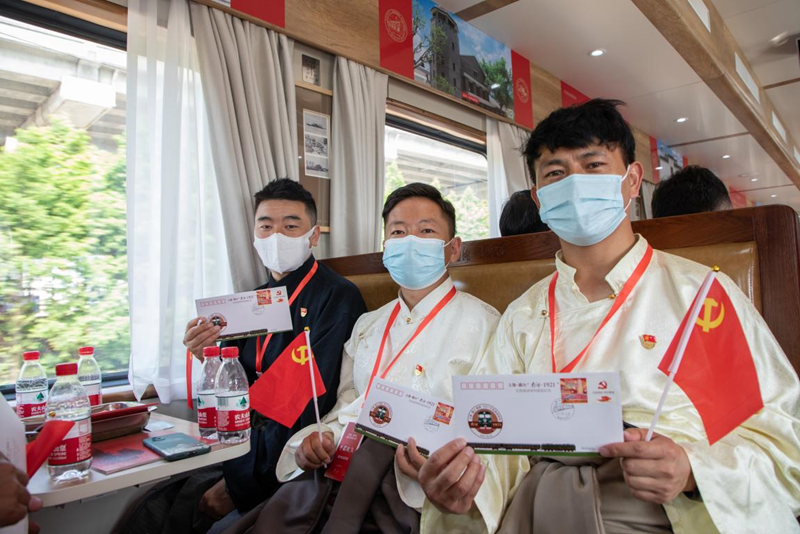 6月25日上午,上海至嘉興的“南湖·1921”紅色旅游列車正式開通。上午8時,身著藏裝的西藏自治區(qū)那曲市色尼區(qū)代表團乘上列車前往嘉興。