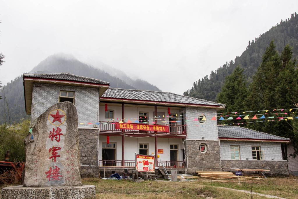 在易貢茶場,一座二層石木結(jié)構(gòu)的小樓前立著一塊石碑,上面用紅漆書寫著“將軍樓”3個(gè)大字。據(jù)介紹,這是當(dāng)年十八軍軍長張國華將軍在藏期間的辦公起居地之一?!安筷?duì)留下了10幢樓房和11幢平房,這是茶場最珍貴的紅色遺跡。”才程說。