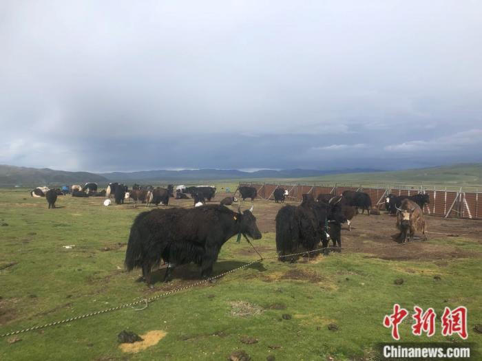 色尼區(qū)嘎?tīng)柕滦竽翗I(yè)示范基地上的牦牛。中新網(wǎng)左宇坤 攝