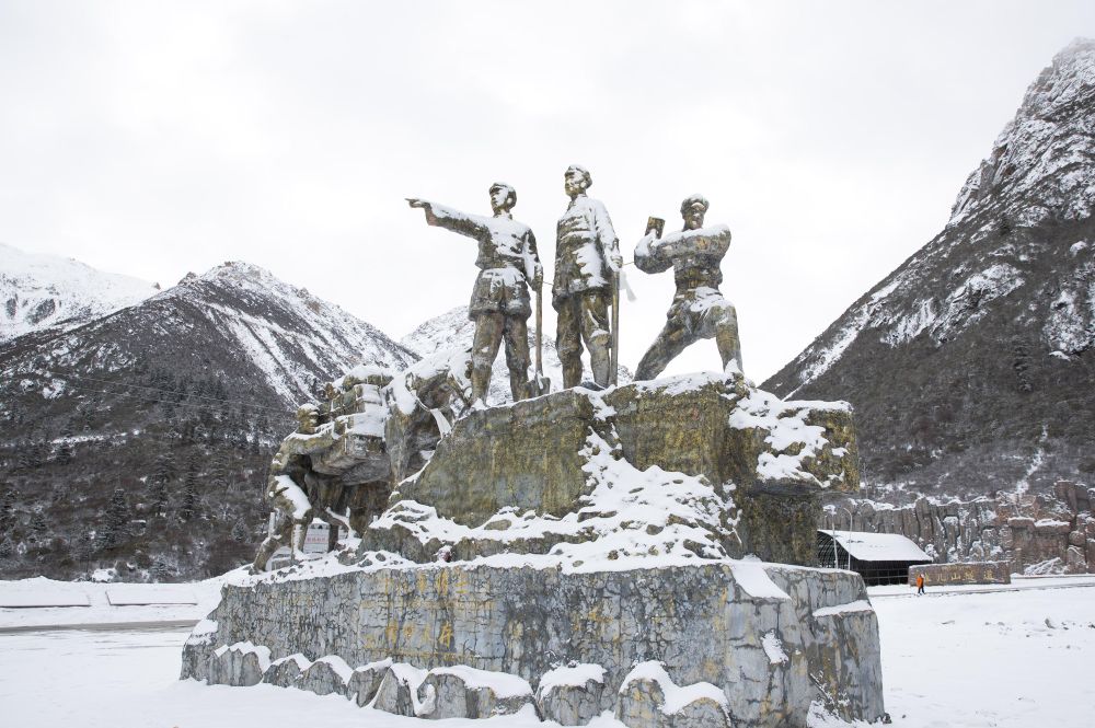 這是雀兒山下張福林烈士陵園前豎立著的“十八軍將士精神永存”雕塑(2019年11月1日攝)。新華社記者 江宏景 攝