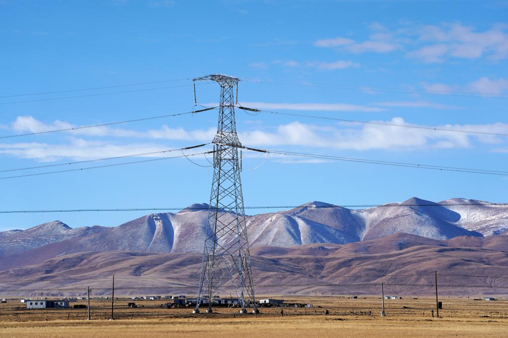 這是2020年11月29日在阿里地區(qū)普蘭縣拍攝的阿里與藏中電網(wǎng)聯(lián)網(wǎng)工程的輸電塔基。新華社記者詹彥 攝