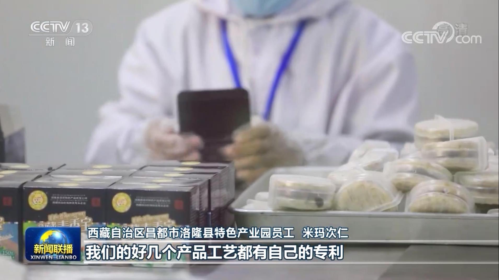 西藏自治區(qū)昌都市洛隆縣特色產(chǎn)業(yè)園員工 米瑪次仁:這是我們公司生產(chǎn)的青稞漢堡,已經(jīng)成為西藏航空食品,非常受歡迎。 我們的好幾個(gè)產(chǎn)品工藝都有自己的專利。