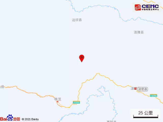 周邊縣城:震中距邊壩縣71公里、距巴宜區(qū)85公里、距波密縣105公里、距洛隆縣110公里、距墨脫縣120公里,距林芝市84公里,距拉薩市363公里。