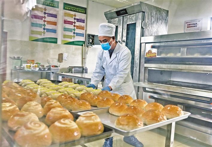 白朗縣康桑農(nóng)產(chǎn)品發(fā)展有限公司的員工將制成的糌粑稱重分揀。丹增群培 唐斌 攝