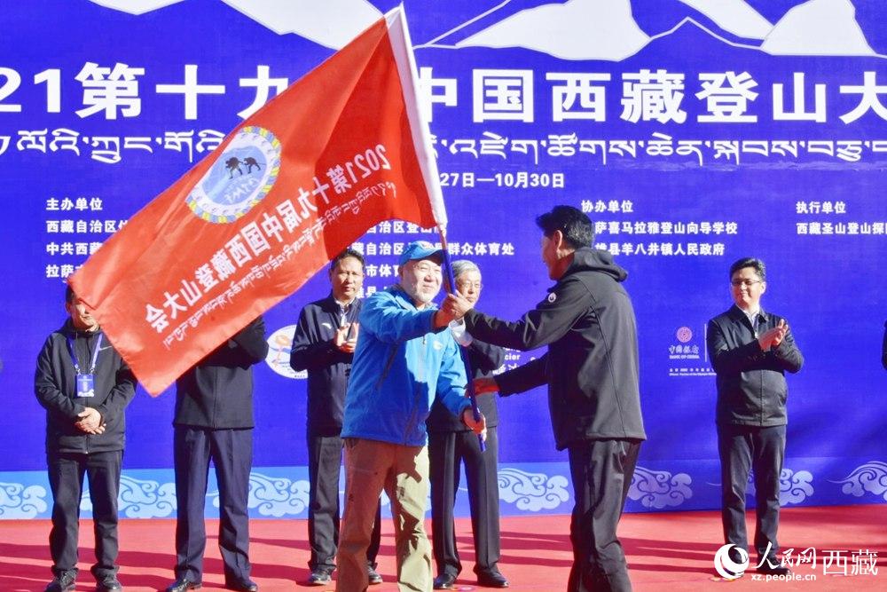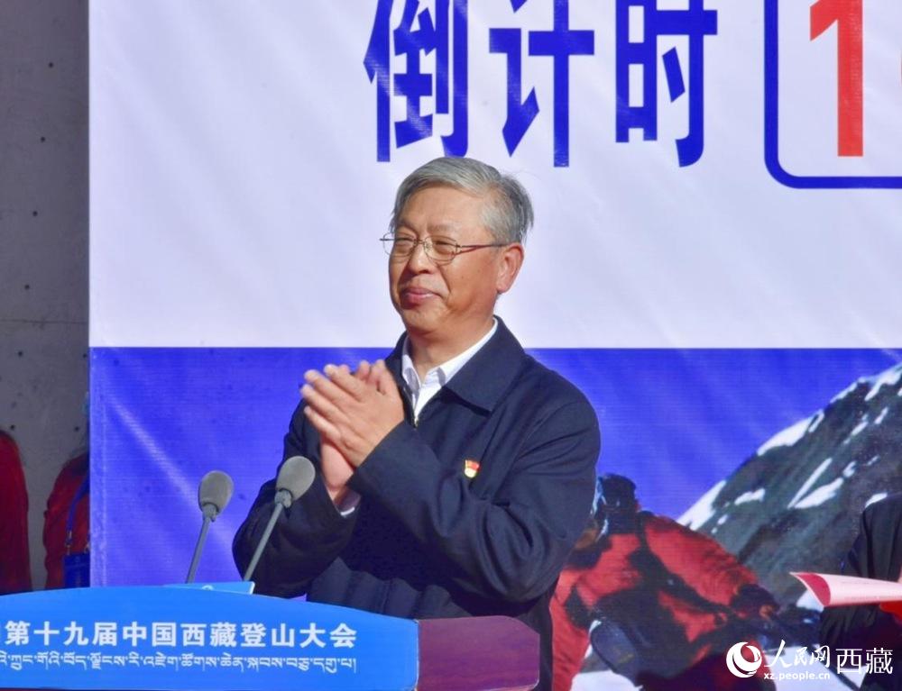 中國登山隊隊長王勇峰致辭。 人民網(wǎng) 李海霞攝