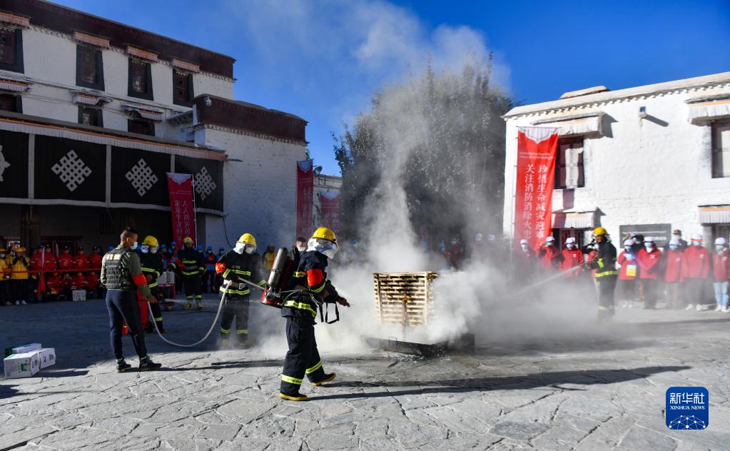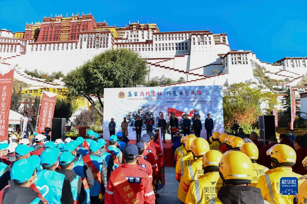 11月4日拍攝的西藏自治區(qū)2021年“119”消防宣傳月活動(dòng)啟動(dòng)儀式現(xiàn)場(chǎng)。新華社記者 晉美多吉 攝