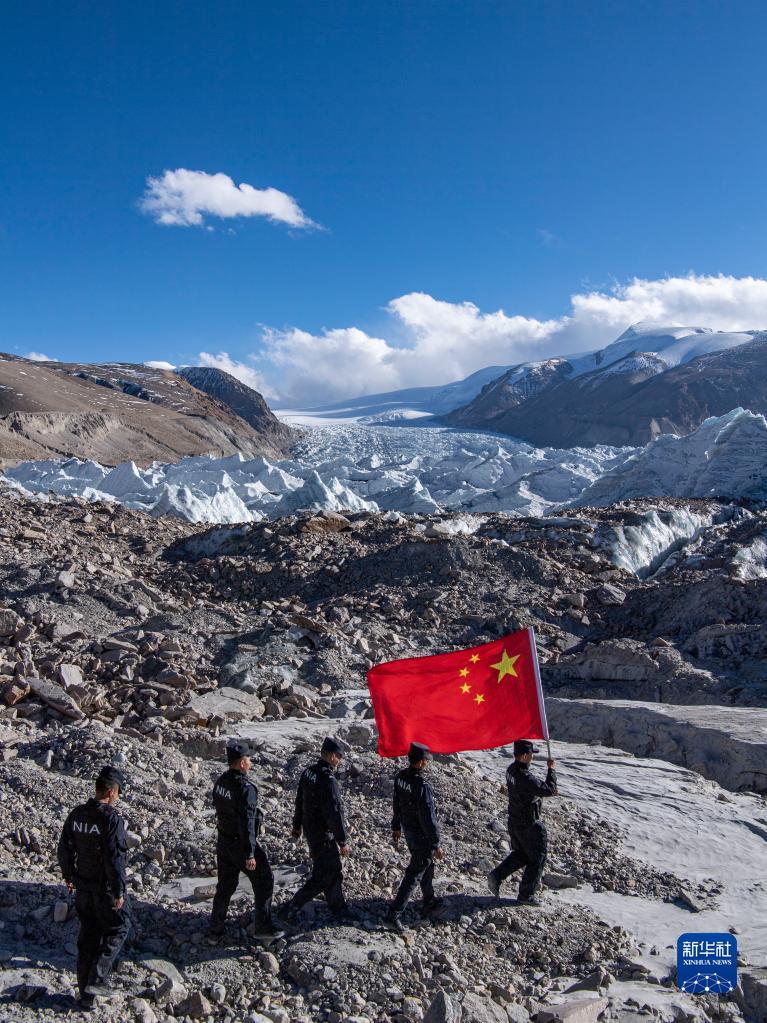 普瑪江塘邊境派出所的移民管理警察在崗布冰川附近巡邏(11月20日攝)。新華社記者 孫非 攝