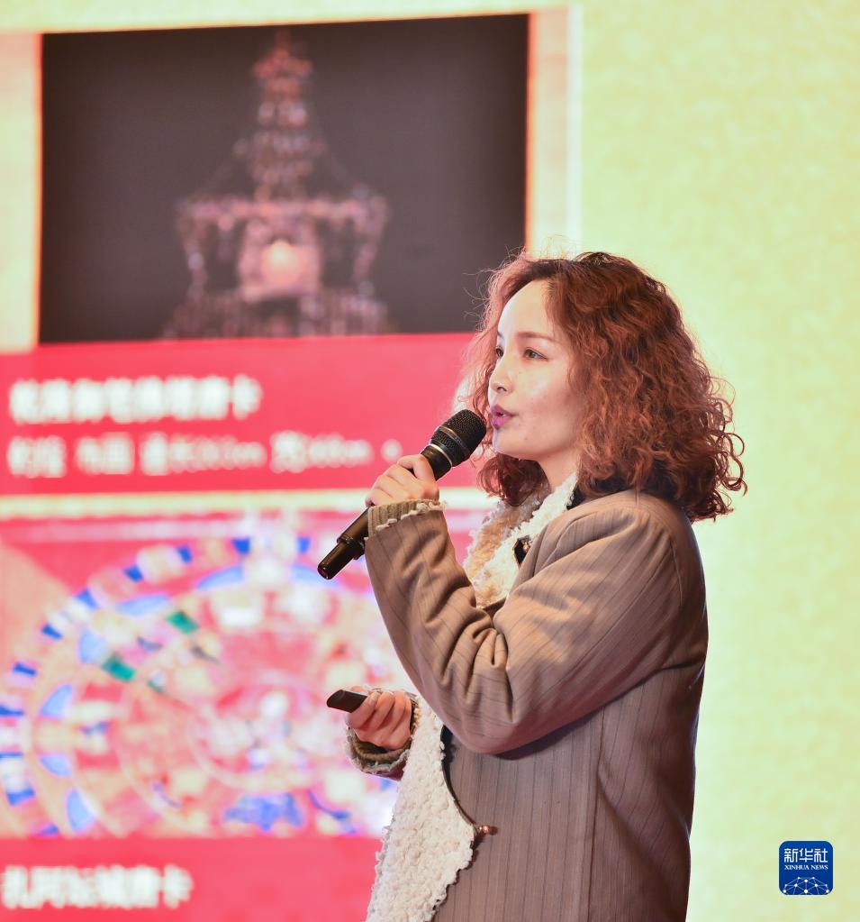 12月11日,一名工作人員在展示選手的參賽作品。新華社記者 晉美多吉 攝