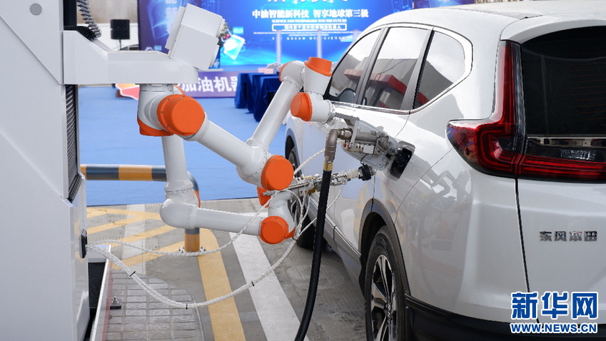 “手機(jī)APP上輸入加油的金額,機(jī)器人就能精準(zhǔn)定位并打開(kāi)油箱蓋,自動(dòng)加油,全程司機(jī)不用下車?!敝袊?guó)石油工作人員郭珍介紹時(shí),機(jī)器人緩緩打開(kāi)油箱蓋……