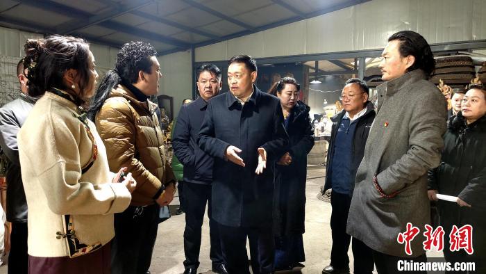 嘎瑪澤登(中)在拉薩市城關(guān)區(qū)雪堆白文教集團調(diào)研?!∝暽@?攝