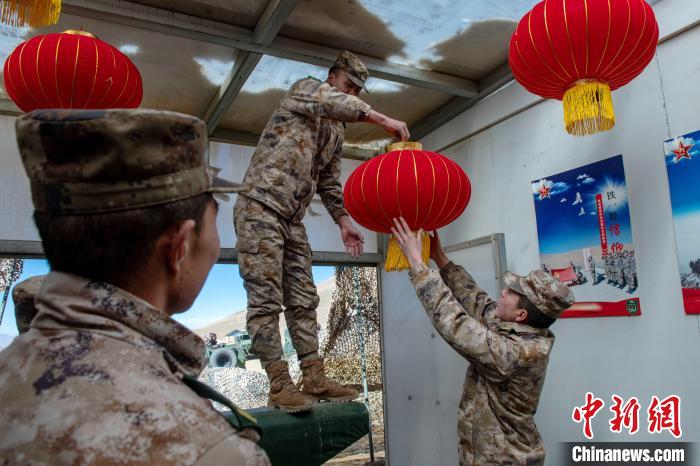 圖為官兵裝點(diǎn)布置營區(qū),營造春節(jié)氛圍。 王述東 攝