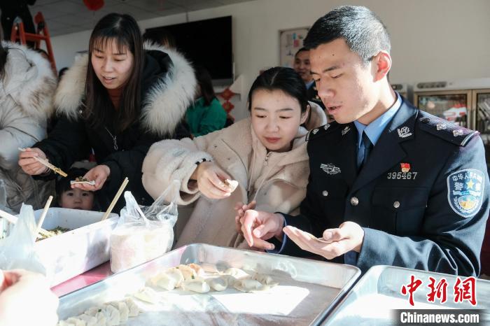 戍邊民警和家人一起包餃子?!〗w波 攝
