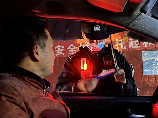 圖為林芝達(dá)國橋邊境檢查站民警元宵節(jié)當(dāng)晚在執(zhí)勤點(diǎn)檢查車輛。 姜?jiǎng)P峰 攝