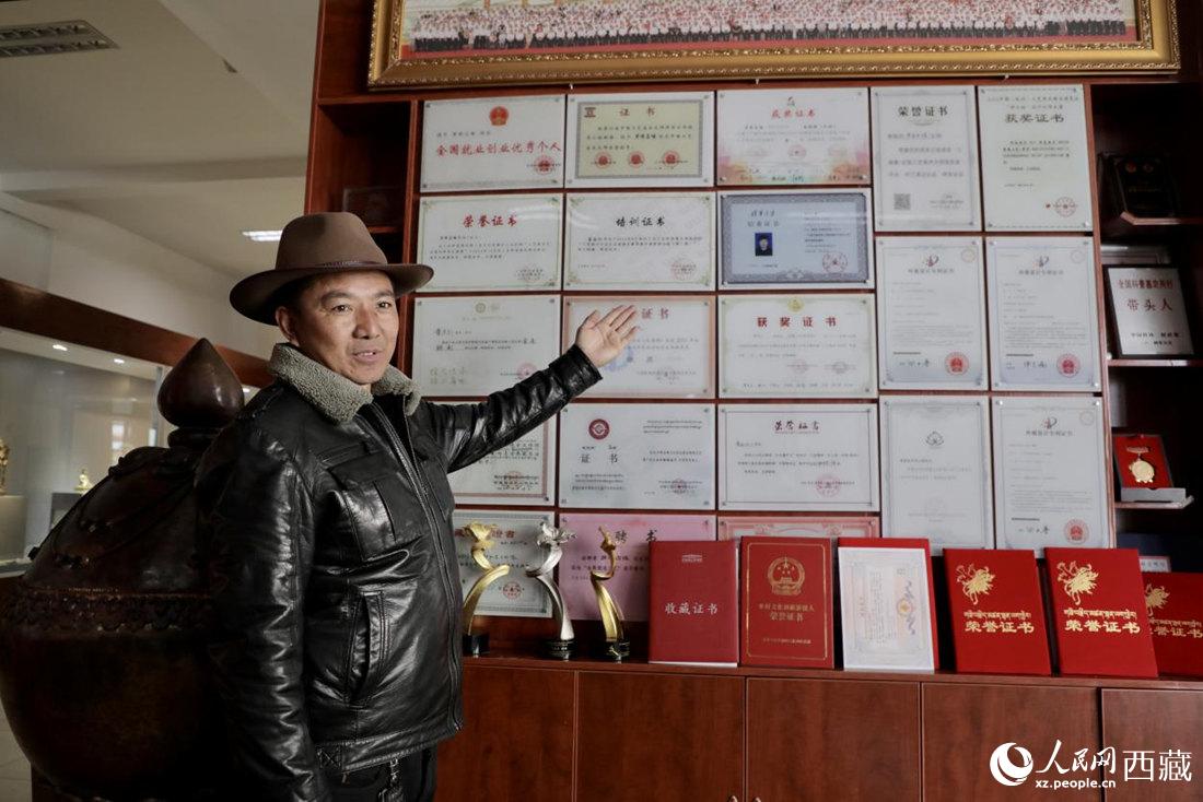 2012年傳承人羅布占堆獲中國工藝美術(shù)大師稱號(hào)。人民網(wǎng) 次仁羅布攝