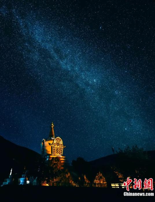 西藏林芝魯朗小鎮(zhèn)夜空璀璨。中新社記者 何蓬磊 攝