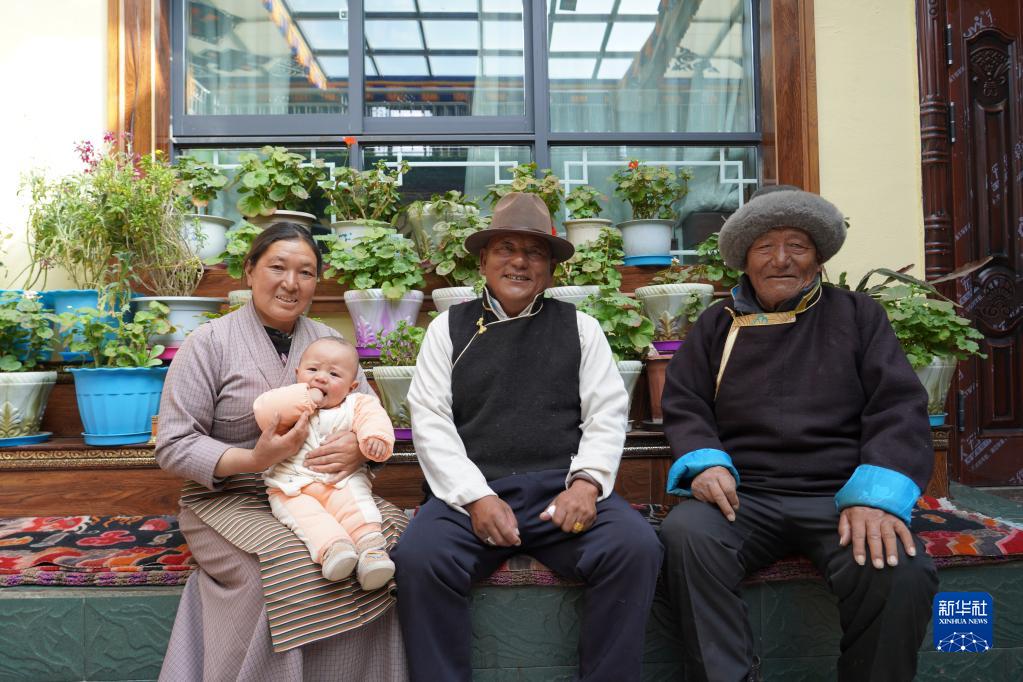 初春時(shí)節(jié),乍暖還寒。西藏自治區(qū)措美縣當(dāng)許村居民多吉家的陽光房里,鮮花姹紫嫣紅,溫暖濕潤。他6個(gè)月大的外孫達(dá)瓦頓珠抱著玩具不時(shí)發(fā)出“咯咯”的笑聲。這位憨厚的藏族老人身體矍鑠、紅光滿面:“新時(shí)代出生的孩子,比我們幸福一百倍哦?!?/p>