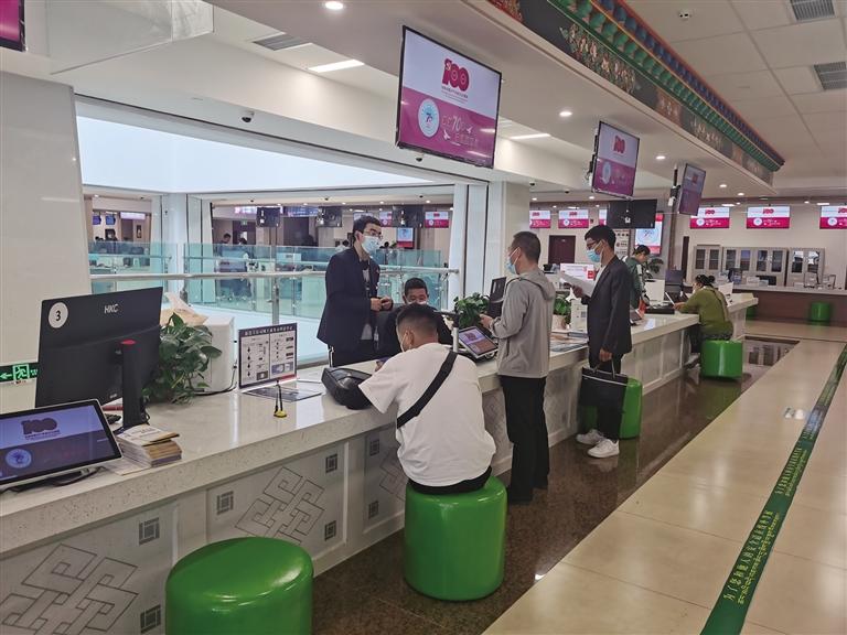 市民在拉薩三級政務(wù)服務(wù)大廳辦理相關(guān)業(yè)務(wù)。