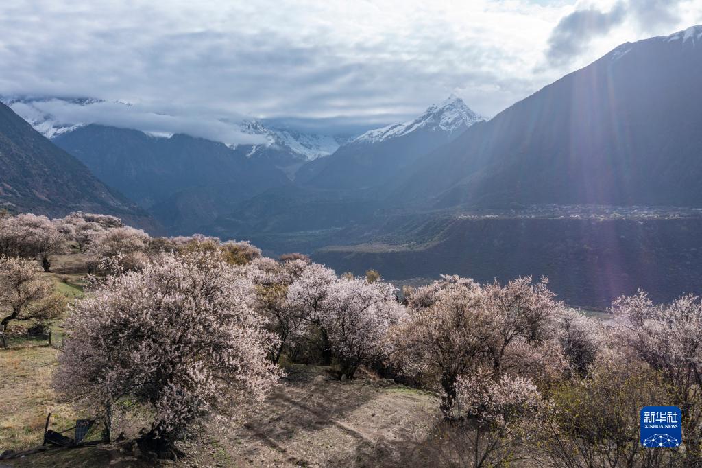 桃花掩映下的南迦巴瓦峰(4月13日攝)。新華社記者 晉美多吉 攝