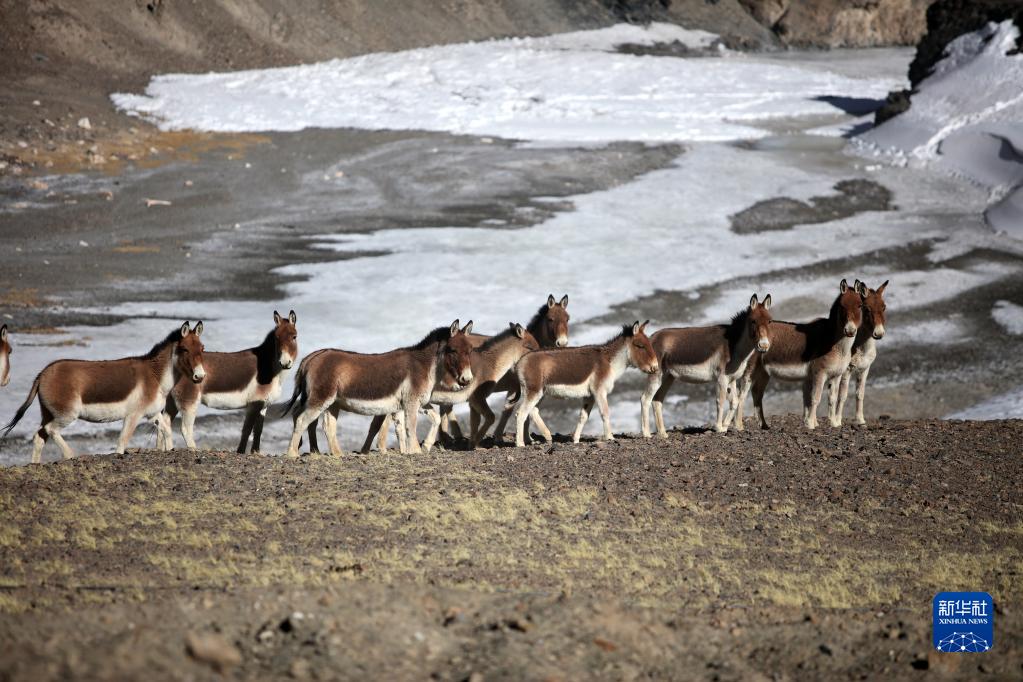 這是在西藏阿里革吉縣拍攝的一群藏野驢(4月12日攝)。新華社記者 姜帆 攝