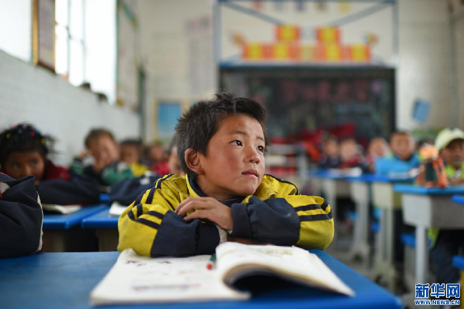 多油村中心小學(xué)的學(xué)生在聽(tīng)課(4月21日攝)。新華網(wǎng) 旦增努布攝