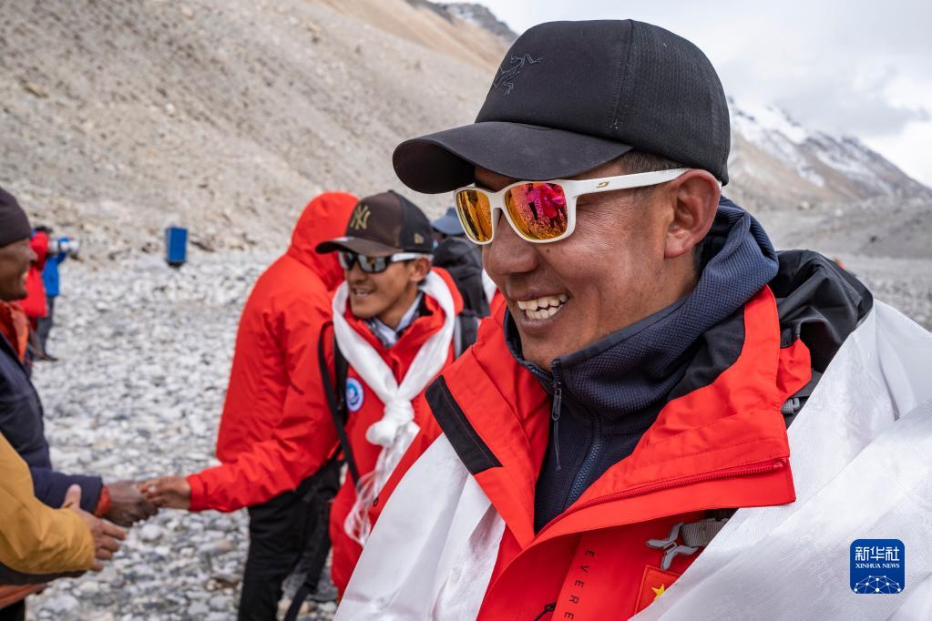 2022年5月5日,珠峰科考登頂工作小組組長(zhǎng)德慶歐珠返回大本營(yíng)。