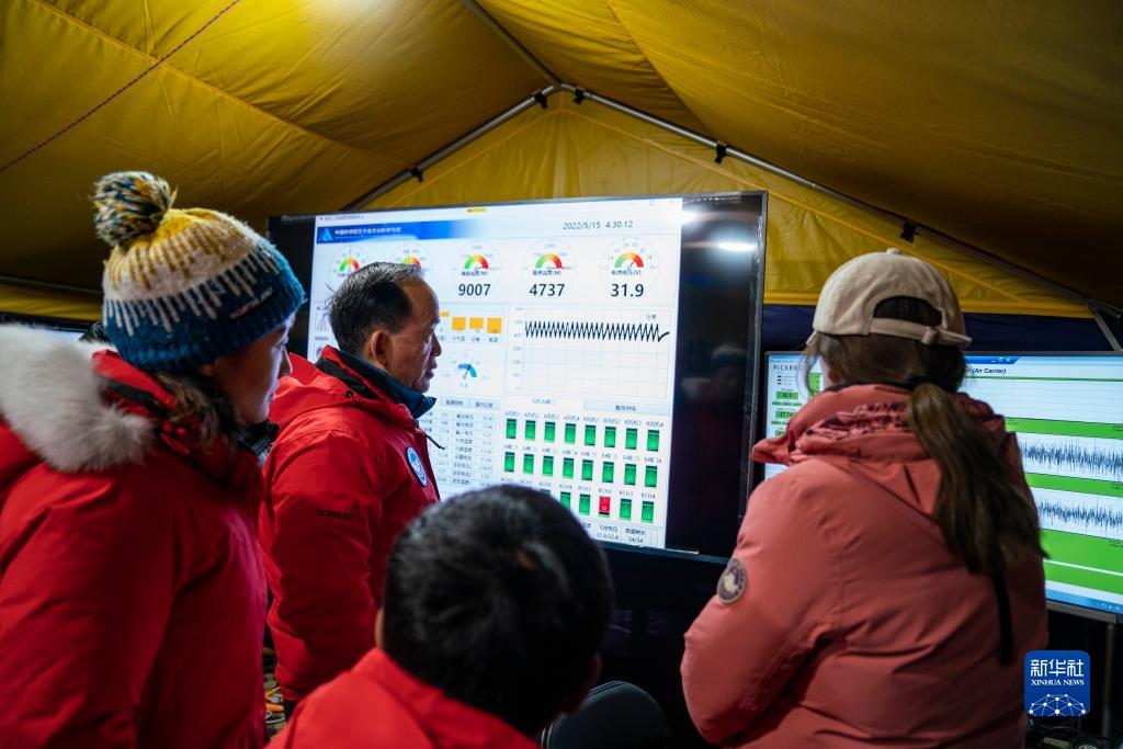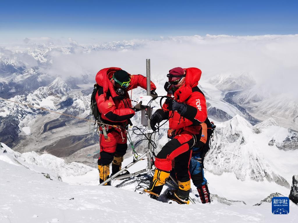 5月4日,德慶歐珠帶領(lǐng)的登頂小組科考隊(duì)員,在珠峰海拔8830米處架設(shè)世界海拔最高自動氣象站,建成珠峰梯度氣象觀測體系;在峰頂首次利用高精度雷達(dá)測量冰雪厚度,并采集了峰頂冰雪樣品。