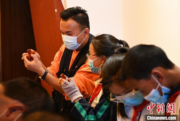 此次展覽的首場講解由拉薩市北京實驗中學(xué)學(xué)生承擔?;顒舆€邀請了在校學(xué)生體驗了古建榫卯組裝、北京古城池拼圖等社教活動。