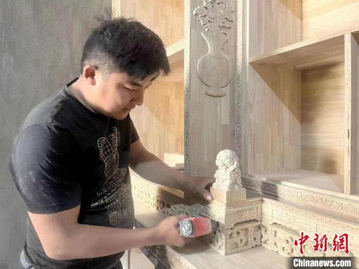 說(shuō)干就干,2021年他在村里開(kāi)了木材加工廠(chǎng),為此,他還特地去外地學(xué)習(xí)操作方法,“藏式家具的雕花很復(fù)雜,但是我有壁畫(huà)的繪畫(huà)功底,學(xué)習(xí)起來(lái)非常快?!?/p>