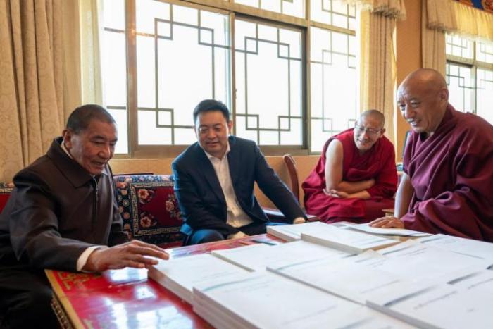 推進藏傳佛教中國化行穩(wěn)致遠。推進藏傳佛教中國化是習近平總書記對藏傳佛教工作提出的重大要求。全面貫徹新時代黨的宗教工作理論和方針政策,堅持“導”的思想方法,堅持“五個有利于”標準,尊重群眾的宗教信仰,依法加強宗教事務管理,不斷健全完善宗教工作體制機制和寺廟管理長效機制。大力實施社會主義核心價值觀引領工程、中華優(yōu)秀傳統(tǒng)文化學習浸潤工程、國家通用語言文字普及工程、教義教規(guī)闡釋工程,深入開展“國家意識、公民意識、法治意識”教育,常態(tài)化推進“遵行四條標準、爭做先進僧尼”教育實踐活動,支持宗教界進行自我變革、從嚴治教,促進藏傳佛教健康傳承,積極引導藏傳佛教與社會主義社會相適應。